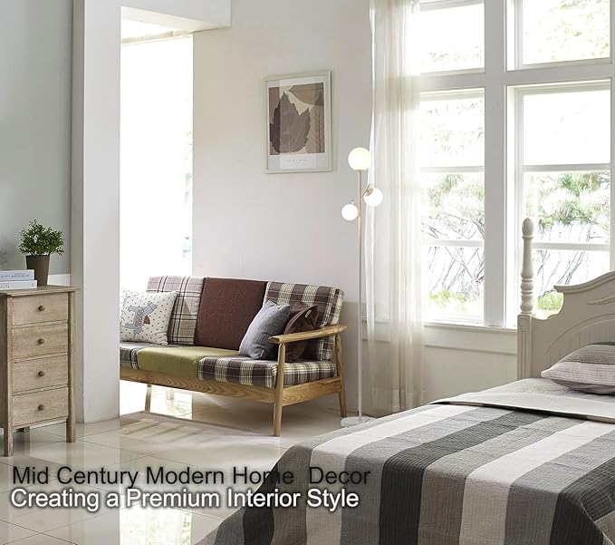 Fiqevs White Mid Century Floor Lamp, Modern 3 Globe Standing Lamp with 3 LED Bulbs & Arcing Frosted Glass Shades, Boho Rustic Tall Tree Lamp for Living Room, Bedroom & Office