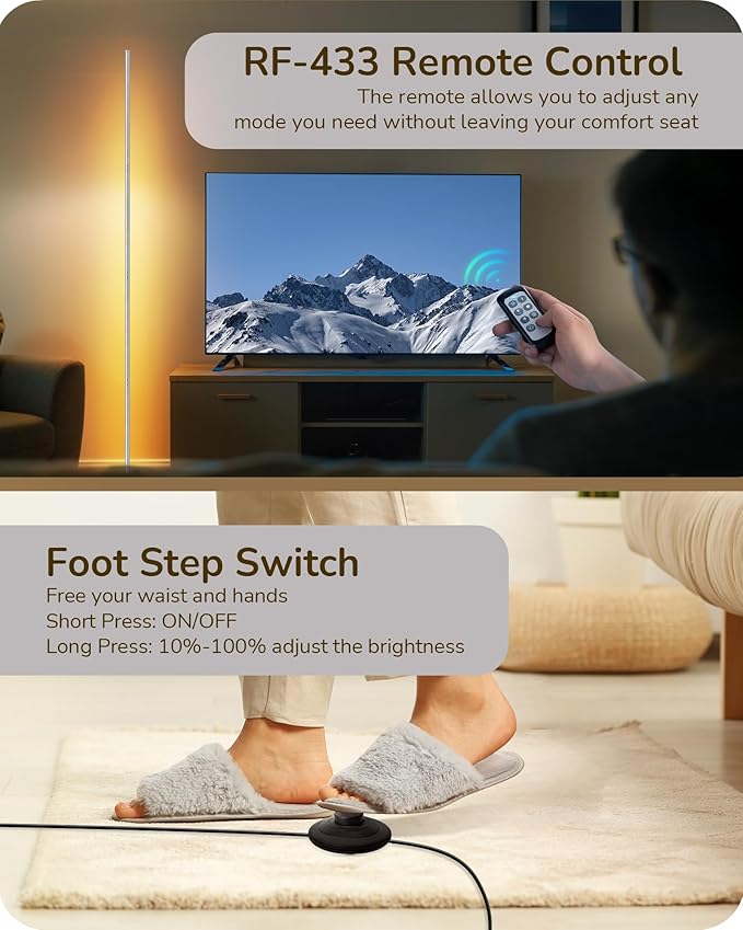 EDISHINE LED Standing Floor Lamp, Dimmable Corner Standing Light with Remote, 3 Color Temperature 3000K-4500K-6000K, 57.5" Modern Floor Lamps for Living Room, Bedroom, Office, Silver