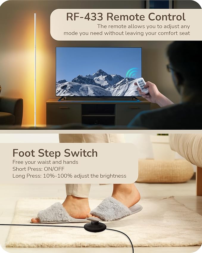 EDISHINE Corner LED Floor Lamp, 57.5" Dimmable Corner Light with Remote, 3 Color Temperature 3000K-4500K-6000K, Minimalist Floor Lamp for Bedroom, Living Room, Office, White