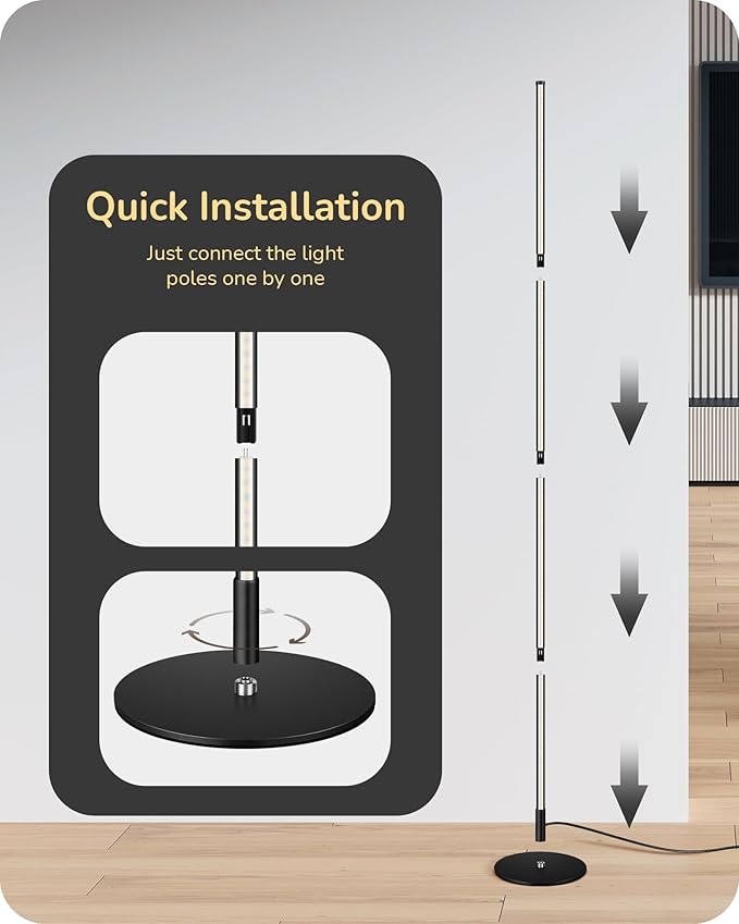 EDISHINE Corner Floor Lamp, Dimmable LED Light with Remote, 3 Color Temperature 3000K-4500K-6000K, 57.5" Modern Black LED Floor Lamp for Bedroom, Living Room, Office