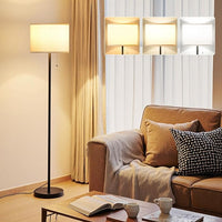 Ambimall Modern Standing Floor Lamp for Living Room & Bedroom with 3 Color Temperatures Bulb & Pull Chain Switch, 60" Tall with Beige Shade & Black Pole