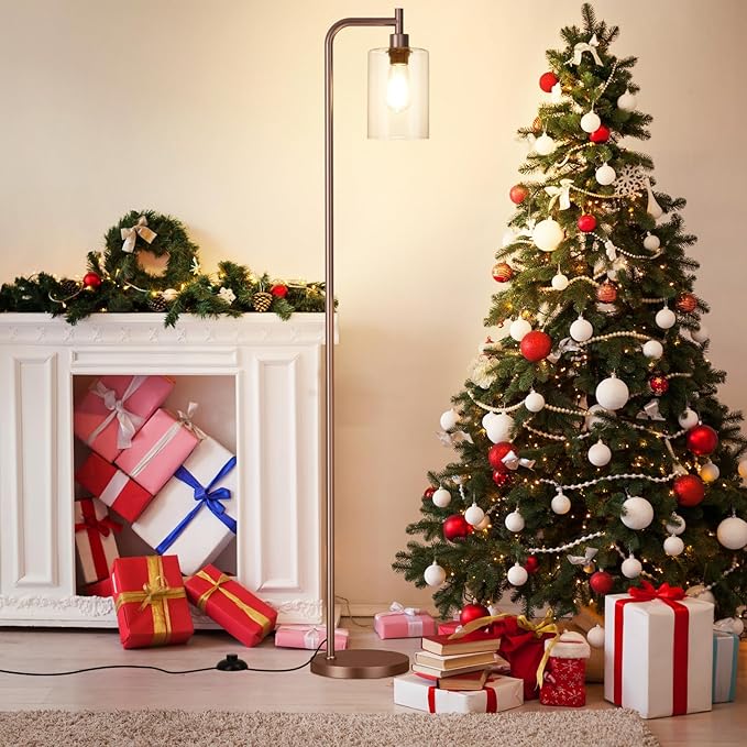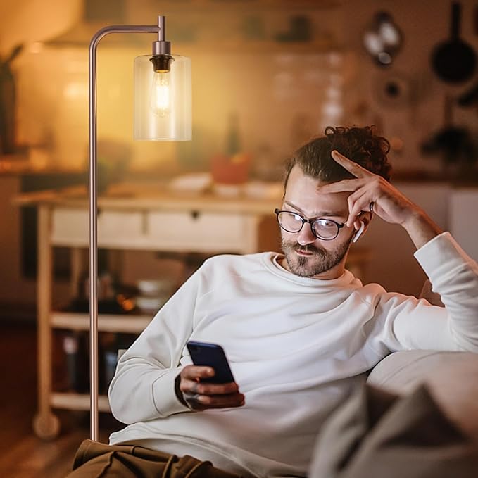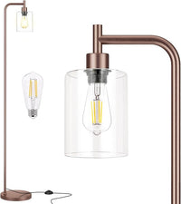 Floor Lamps for Living Room - Industrial Standing Lamp with Glass Shade, Modern Floor Lamp with LED Bulbs, Farmhouse Floor Lamp for Bedroom, Tall Lamp for Office - Brown