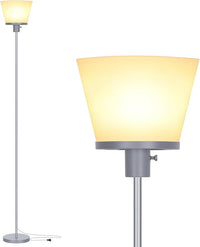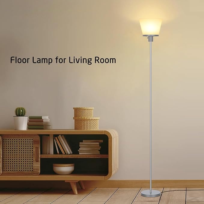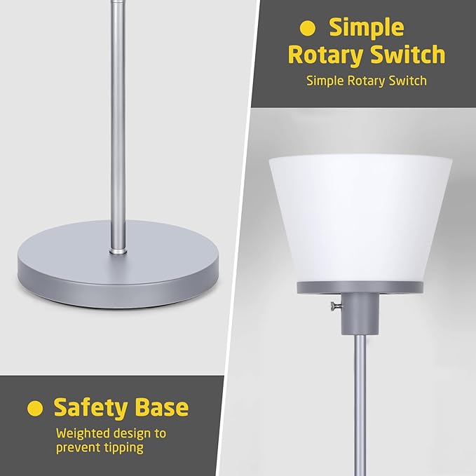 Standing Lamp for Bedroom, LED Modern Floor Lamp for Living Room Office, Sliver Tall Bright Floor Lamp with White Plastic Shade, Bulb Not Included.