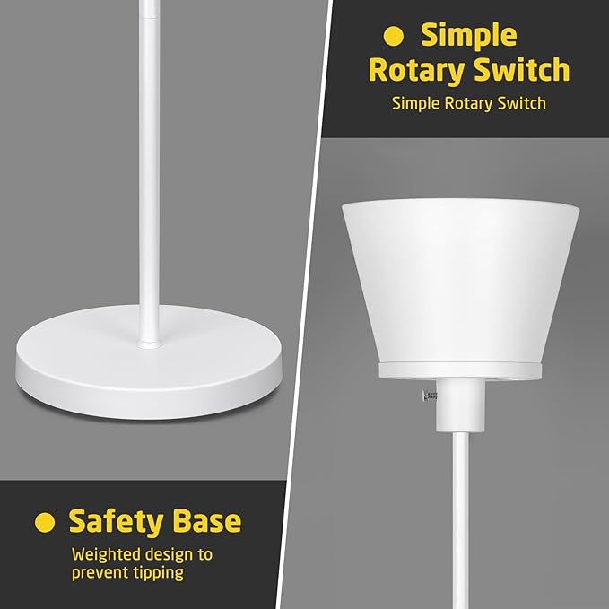 LED Floor Lamp for Office, Modern Tall Standing Lamps Floor Lamp for Bedroom Living Room, White Bright Lamp with Plastic Shade, Bulb Not Included.