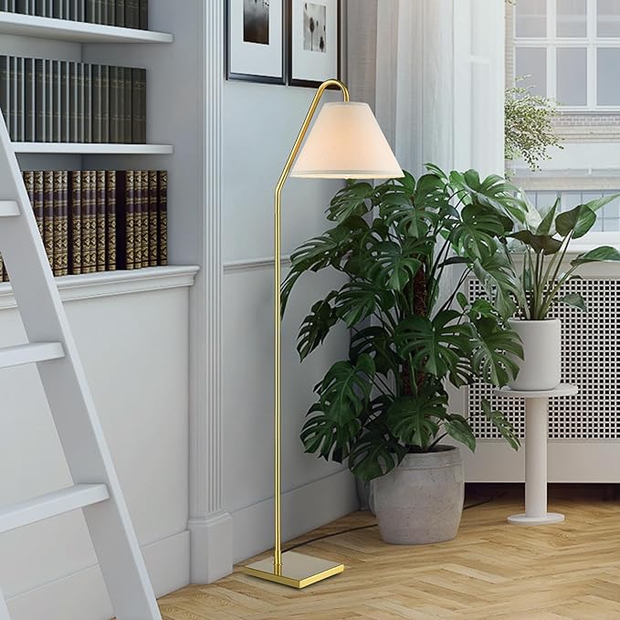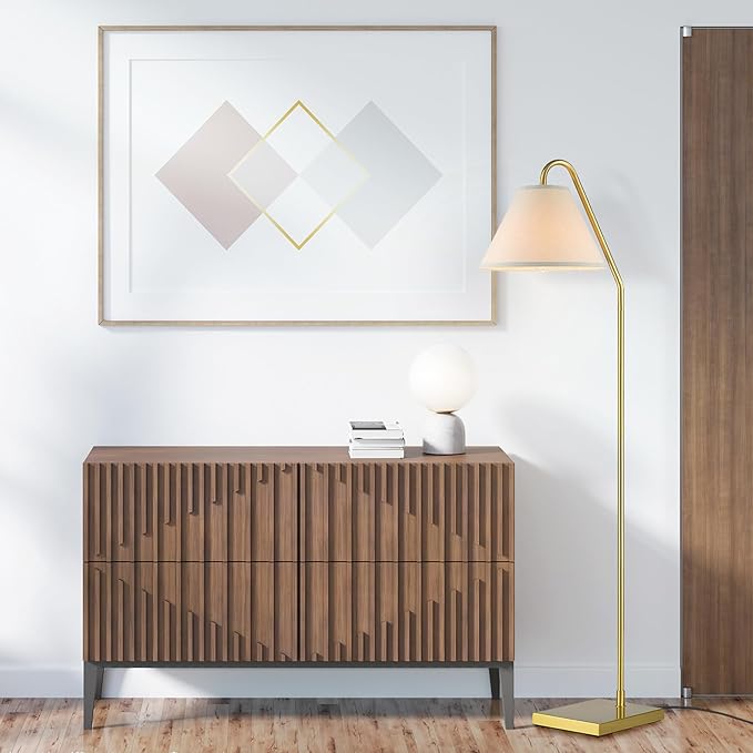 GLOBE Electric 61000147 62" Floor Lamp, Matte Brass, Beige Fabric Shade, On/Off Rotary Switch on Socket, 6-Foot Clear Cord, Reading Light, Bedroom, Living Room, Home Decor