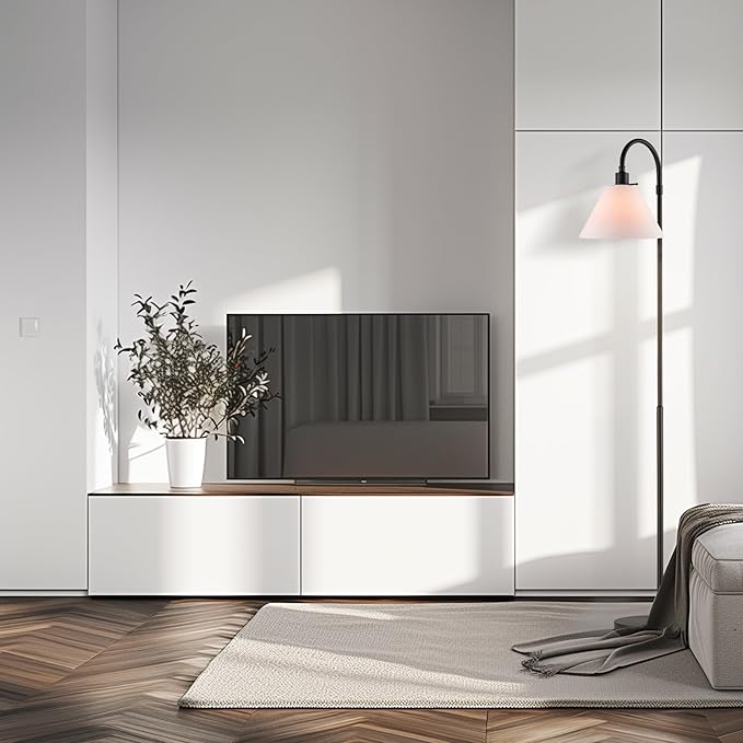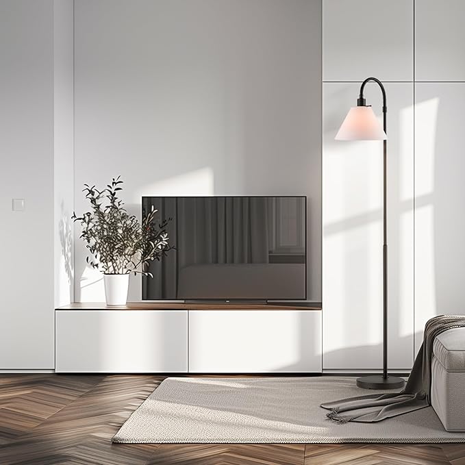 GLOBE Electric 61000146 62" Floor Lamp, Matte Black, White Fabric Shade, On/Off Rotary Switch on Socket, 6-Foot Black Cord, Reading Light, Bedroom, Living Room, Home Decor