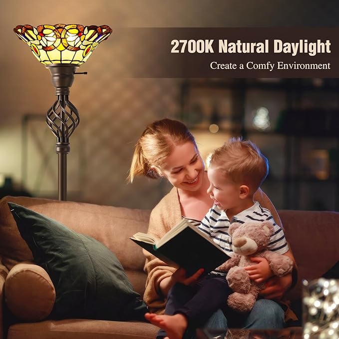 GyroVu Tiffany Floor Lamp, Torchiere Floor Lamps with Stained Glass, 71 Inch Tall Floor Standing Reading Light for Living Room Corner Bedroom Home Office, Bulbs Included