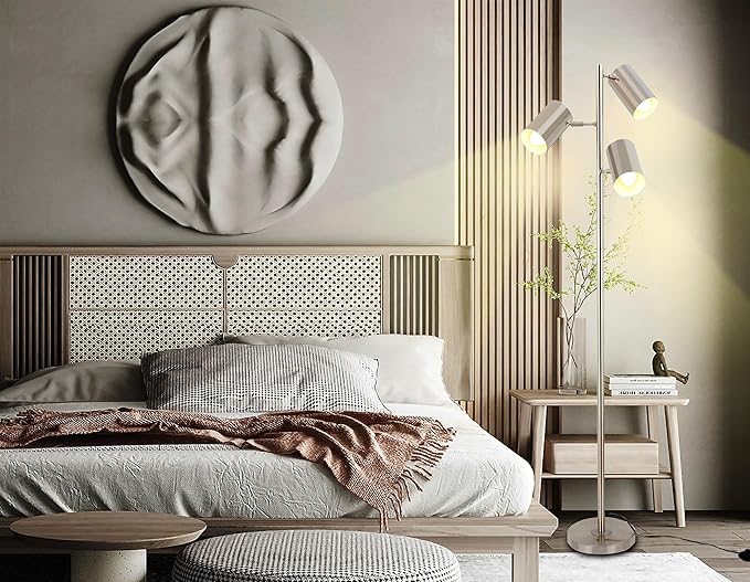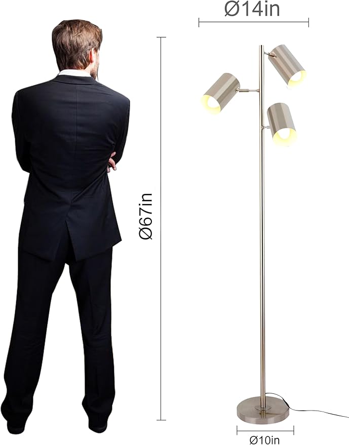 Tree Floor Lamp with 3 Light Bulbs,Nickel Standing Tall Pole Lamp with 3 Adjustable Rotating Lights,Farmhouse Floor Lamp for Living Room Bedroom Office,Vintage Standing Lamp 9W E26 LED Bulbs Included.