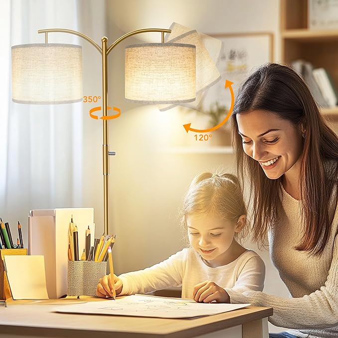 Dimmable Floor Lamp, Arc Floor Lamps for Living Room, Stepless Dimming Modern Standing Lamp with Linen Shade, Tall Lamp for Bedroom Office Dining Room- Gold