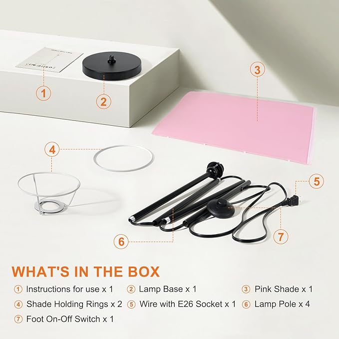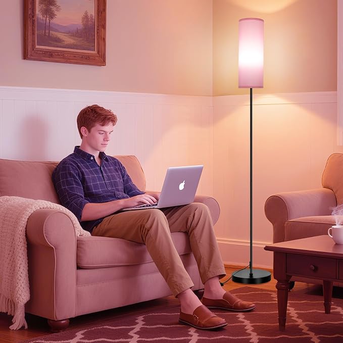 FRIDEKO HOME Floor Lamp with Pink Shade, Simple Design with Foot Pedal Switch, Small Tall Lamps for Living Room Bedroom Office, Corner Floor Stand Light with Black Pole Lamp (No Bulb/No Remote)