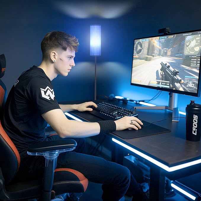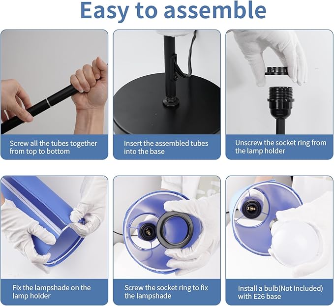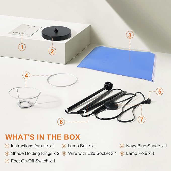 FRIDEKO HOME Floor Lamp with Blue Shade, Simple Design with Foot Pedal Switch, Small Tall Lamps for Living Room Bedroom Office, Corner Floor Stand Light with Black Pole Lamp (No Bulb/No Remote)