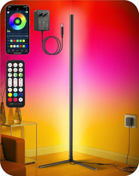 Corner Floor Lamp, Modern LED Corner Lamp with AC Adapter & APP & Remote Control, 16 Million Colors, 68+ Scene Modes, Music Sync, Ambient Lighting for Living Room, Bedroom, and Gaming Room