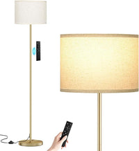 Ambimall 60'' Modern Floor Lamp with Remote, Tall Lamps for Living Room, Bedroom, Office, Dining Room, Beige Shade with Gold Pole(Included Bulb)