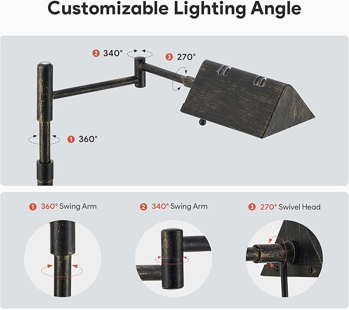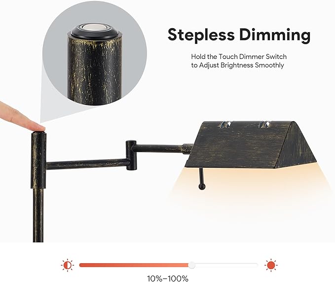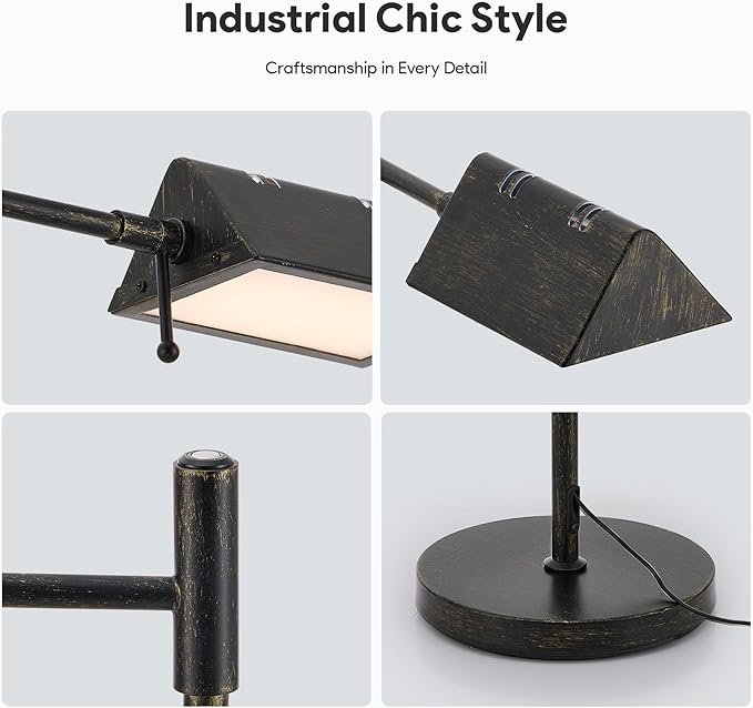 VONLUCE Dimmable LED Floor Lamp, 56" Floor Lamp for Living Room with Adjustable Height Swing Arms 3 Color Temperatures, Industrial Standing Pole Lamp for Bedroom Reading, Rustic Black