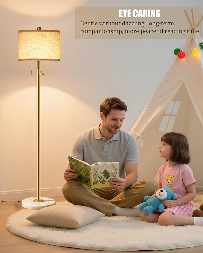 Modern Floor Lamp for Living Room - Adjustable Height Standing Lamp with Marble Base & Linen Shade, 3-Way Dimmable Tall Floor Light for Bedroom, Reading, Bulb Included