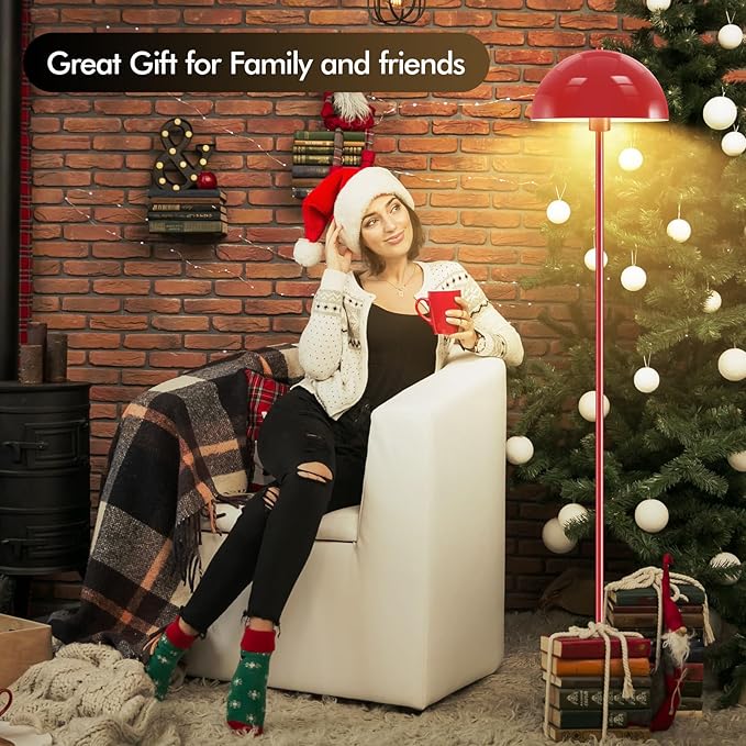 Floor Lamp, Industrial Red Floor Lamps for Living Room, 65.6in Standing Lamp, Retro Mushroom Dome Shade, Whole Metal, E26 Socket, Mid Century Modern Floor Lamp for Bedroom/Office,No Bulb