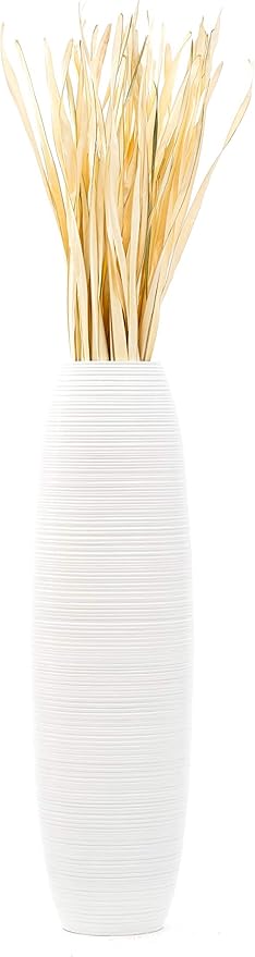 Leewadee Large White Home Decor Floor Vase – Wooden 36 inches Tall Farmhouse Decor Flower Holder for Fake Plant and Pampas Grass