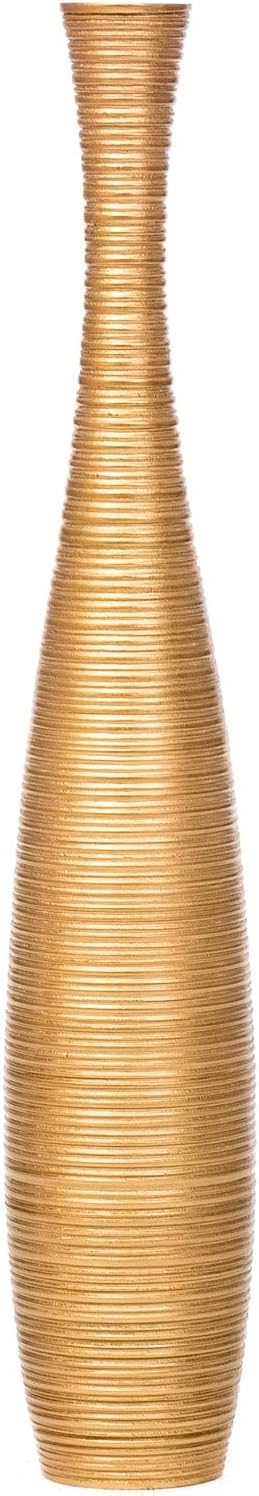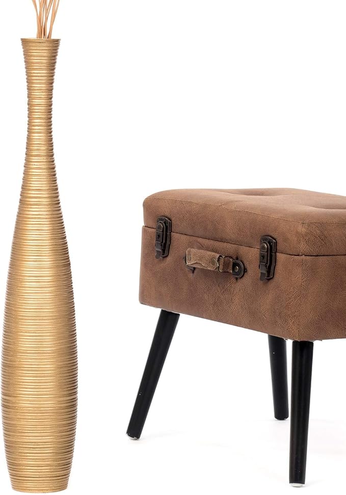 Leewadee Large Gold Home Decor Floor Vase – Wooden 26 inches Tall Farmhouse Decor Flower Holder for Fake Plant and Pampas Grass
