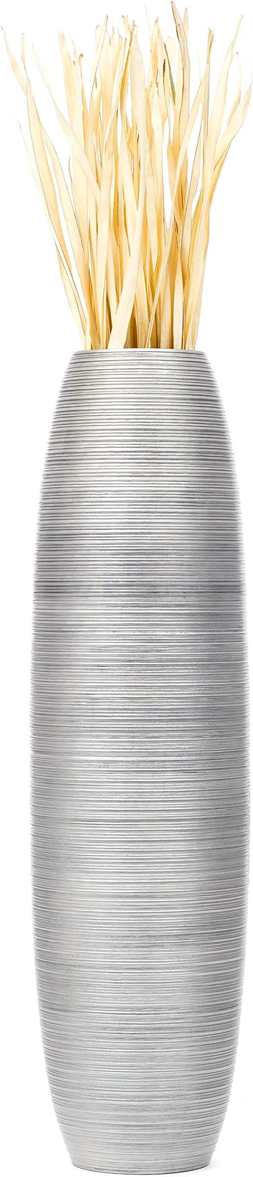Leewadee Large Silver Home Decor Floor Vase – Wooden 43 inches Tall Farmhouse Decor Flower Holder for Fake Plant and Pampas Grass