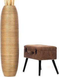 LEEWADEE Large Floor Vase – Handmade Flower Holder Made of Wood, Sophisticated Vessel for Decorative Branches and Dried Flowers, 43 inches, Golden