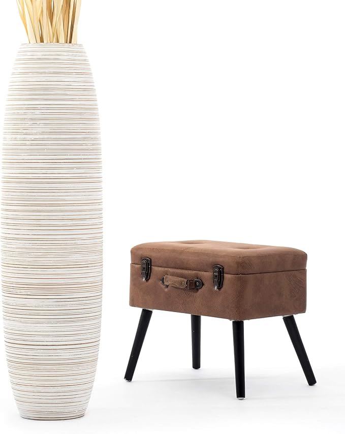 Leewadee Large White Wash Home Decor Floor Vase – Wooden 41 inches Tall Farmhouse Decor Flower Holder for Fake Plant and Pampas Grass