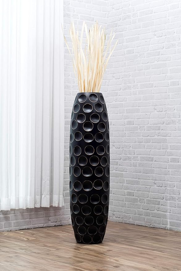 Leewadee Large Black Home Decor Floor Vase – Wooden 41 inches Tall Farmhouse Decor Flower Holder for Fake Plant and Pampas Grass