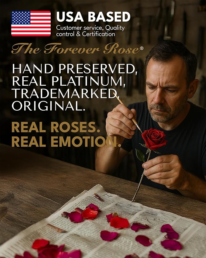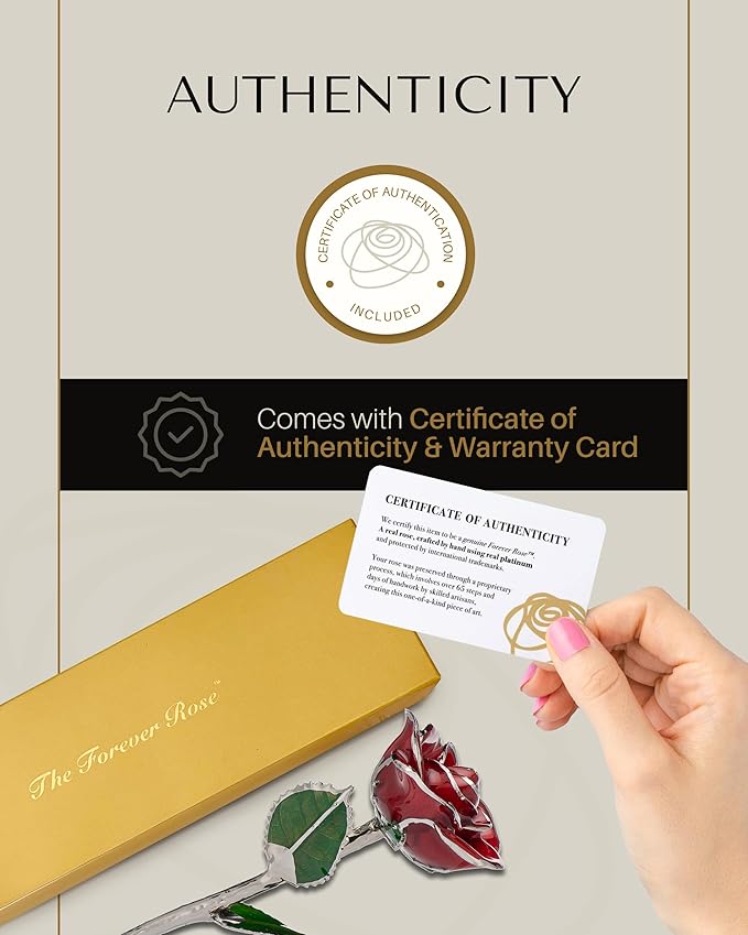 Forever Rose Real Red Rose with Platinum Trimmed Petals and Platinum Stem, Handcrafted Preserved Rose in Luxury Gold Gift Box, Romantic Gift for Her, Elegant Gift for Any Occasion