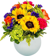 Hugs & Kisses in Opal Vase | Yellow, Orange | Arabella Bouquets | Real Fresh Flowers for Delivery, Gift for Birthday, Congratulations, Anniversary, Thank You, Mother's Day