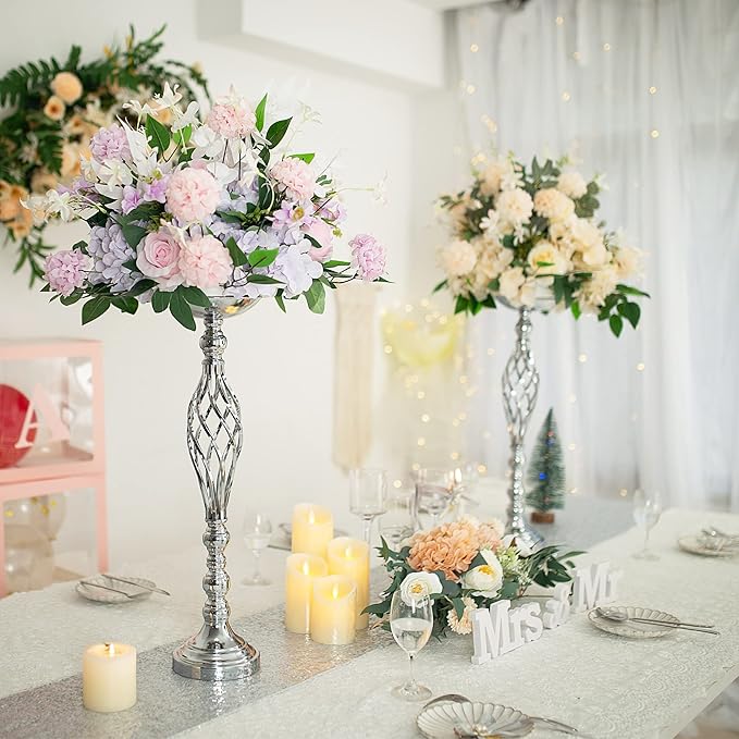 Twist Candleholder Stands & Metal Centerpieces for Reception Tables - Wedding Flower Arrangement Vases for Home Decor