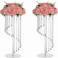 2pcs Gold Flower Trumpet Vases for Wedding Centerpieces for Tables, 20in Metal Diamond Crystal Flower Stand for Wedding Decorations for Reception Party Dining Room Living Room Decor