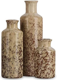 Ceramic Vase Set of 3, Modern Home Decor Distressed Rift Ceramic Small vase for Country Home Decoration, Living Room Decor, Table Decor, and Entrance Decoration(Vase-B)