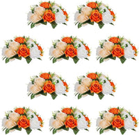 NUPTIO Flower Ball Arrangement Bouquet - 10 Pcs 9.5 inch Diameter Orange Fake Flowers Roses Balls for Centerpieces Tables - Artificial Rose Arrangements for Wedding Centerpiece Table Decorations