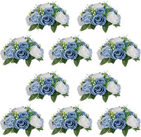 NUPTIO Flower Ball Arrangement Bouquet - 10 Pcs 9.5 inch Diameter Dusty Blue Fake Flowers Roses Balls for Centerpieces Tables - Artificial Rose Arrangements for Wedding Centerpiece Table Decorations