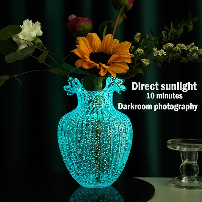 Handmade Glass Flower Vase Luminous Waves Mouth Decorative Vase Vintage Home Decor Rustic Farmhouse Decorations Living Room,Dining Room,Fireplace,Shelf