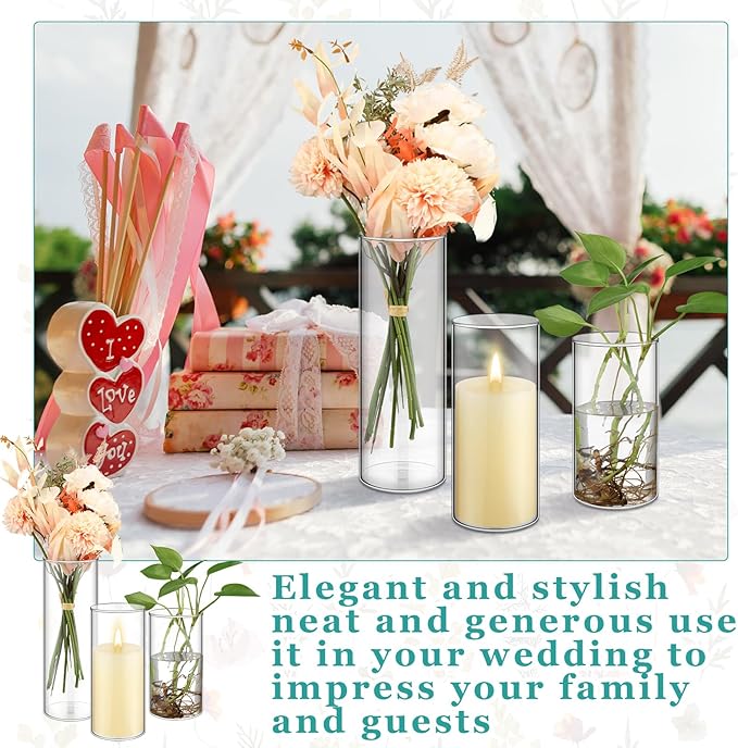 24 Pcs Cylinder Glass Vases Bulk, Tall Clear Flower Vases Transparent Candle Holder for Wedding Table Centerpieces and Home Decoration (6 Inch, 8 Inch, 10 Inch)