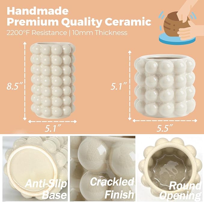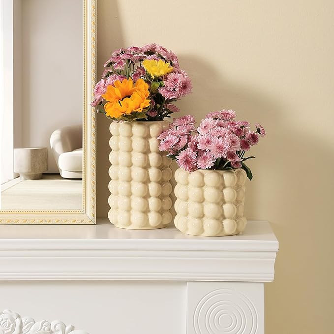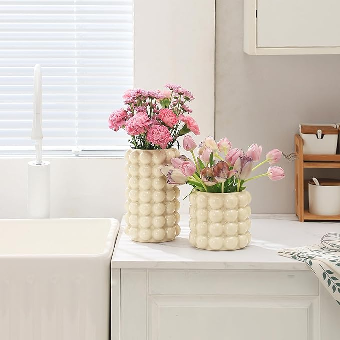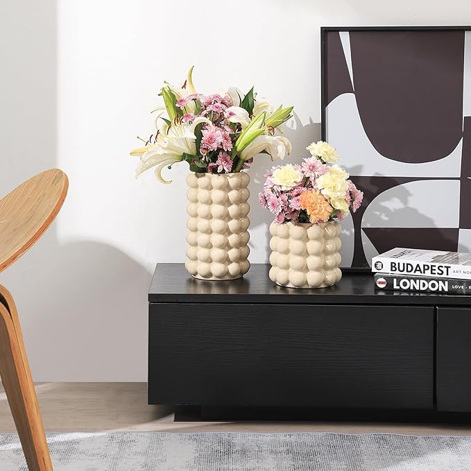 Bubble Vases, Set of 2 Ceramic Vase for Flowers, Boho Ceramic Flower Vases for Decor, Tall Bubble Vase for Living Room, Dining Table, Wedding, Mantel, Coffee Table(Beige)