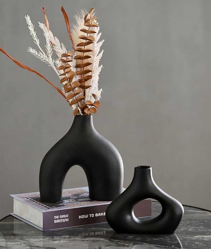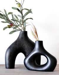 Carrot's Den Donut Vase, Set of 2 - Minimalist Nordic, White Ceramic Hollow Donut Vase Decor | Table Centerpiece, Olive Plant, Wedding, Living Room, Bookshelf, Office, Modern Home, Entryway, Console