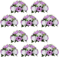 NUPTIO Flower Wedding Centrepieces for Tables - 10 Pcs 9.5in Diameter Lilac & White Artificial Flowers Rose Ball for Centerpieces Table - Fake Rose Arrangements for Weddings Birthday Party Decor