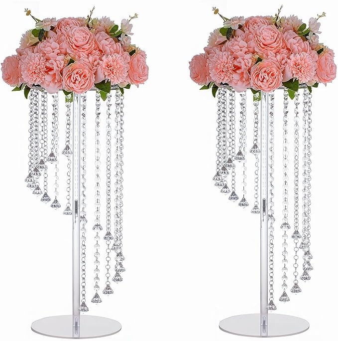 Wedding Centerpieces Decoration Flower Vase, Elegant Acrylic Crystal Stand -2 Pcs 23.6inch High Party Tables Decorations, Dining Table Chandelier Centerpiece Stands