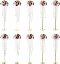 NUPTIO Gold Vases for Centerpieces Wedding - 10 Pcs 39.4in Tall Vase Chandelier Centerpiece for Tables - Flower Stand Bulk for Weddings