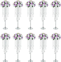 NUPTIO Silver Crystal Wedding Vases - 10 Pcs 29.5in Tall for Centerpieces, Aisle Decorations, Parties