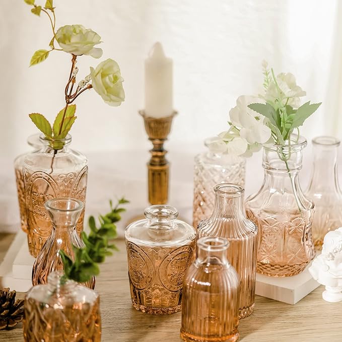 Arme Glass Bud Vase Set,30Pcs Small Glass Vase for Flowers, Clear Bud Vase in Bulk,Mini Single Vintage Vase for Centerpiece,Vases Bulk for Rustic Wedding Decor,Home Table Flower Décor(Amber)