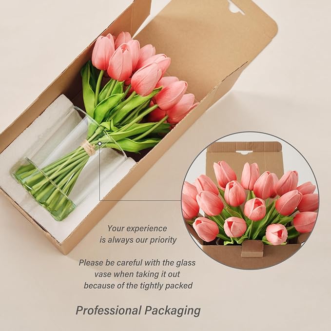 WELL KNOWN 20 Pcs Tulips Artificial Flowers in Vase, Real Touch Tulips with Vase with Upgrate Acrylic Water Flower Arrangements Centerpiece for Dining Room Table Decoration