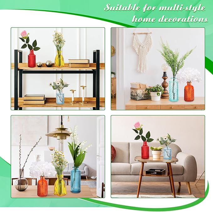 Yaomiao 30 Pcs Vases Bulk Colored Flower Glass Vases Bud Vintage Colored Glass Bottles Colorful Rustic Embossed for Home Wedding Table Decorations Gifts(Bright Color)