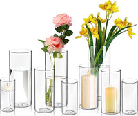 9 Pack Cylinder Vases- for Centerpieces, 6,8,10 Inch Clear Glass Cylinder Candle Holder- for Wedding Centerpirces Decoration Tall Clear Flower Vases, Hurricane Candle Holder for Party Home Decor