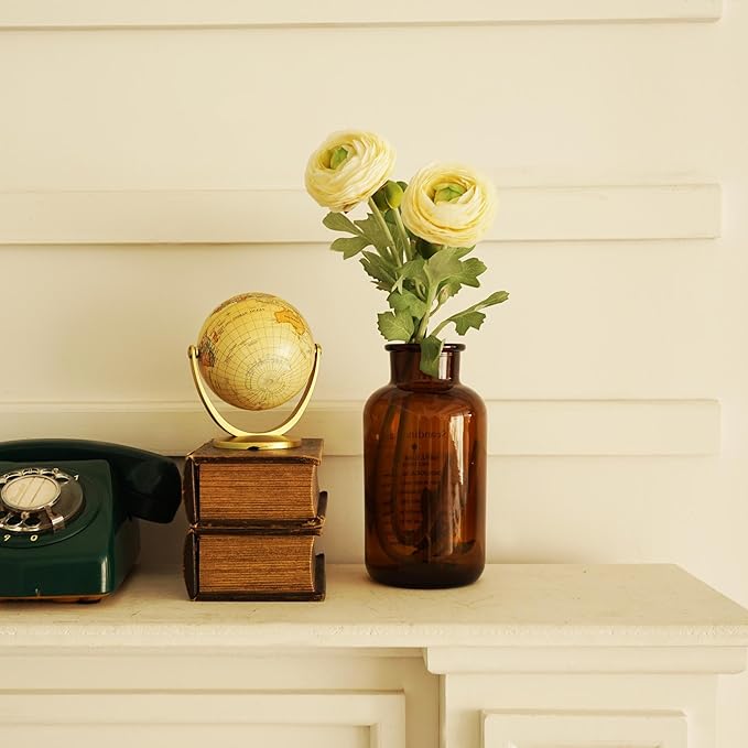 10PCS Artificial Ranunculus Flowers with Real Touch Stem Silk Ranunculus Blooming Flowers Faux Leave for Home Decor Bouquet Ivory Artificial Mums