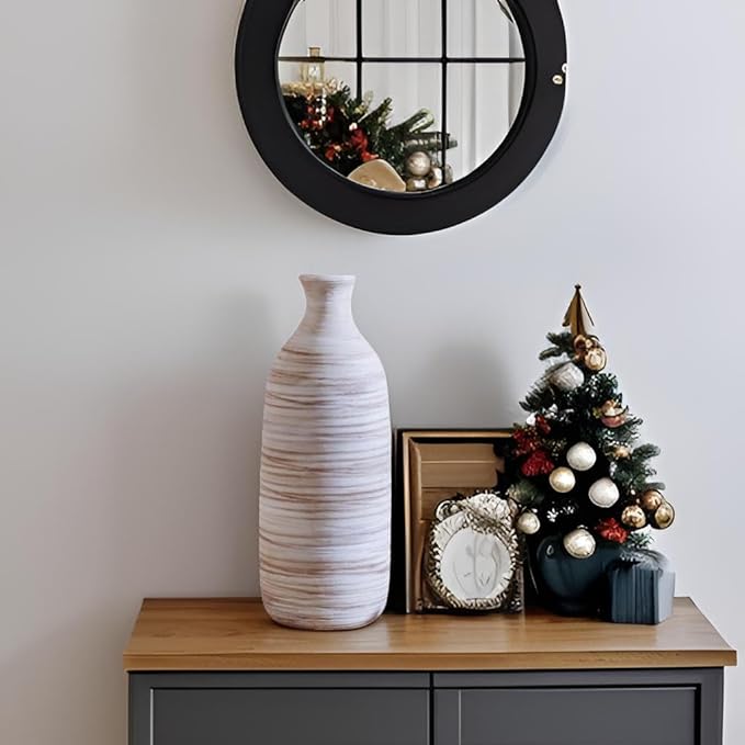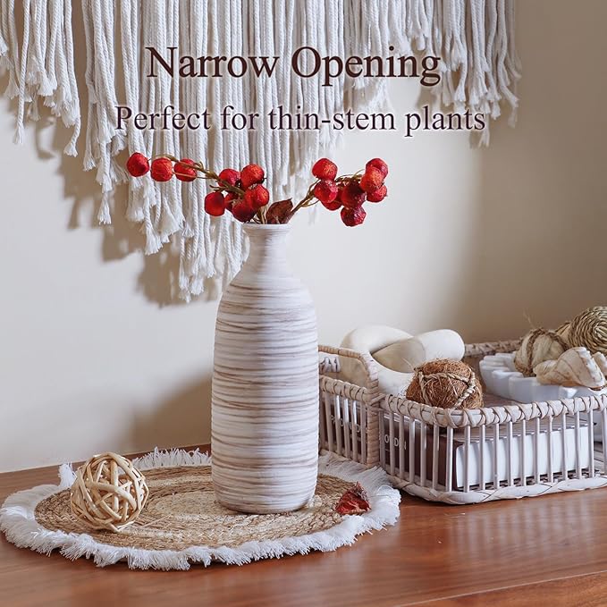 ALMA White Ceramic Vase 11 inch Tall, Narrow Boho Vases for Eucalyptus Leaf Branch|Small Pampas Grass Vase for Minimalist Home Decor, Coastal, Modern Bohemian Style Decor