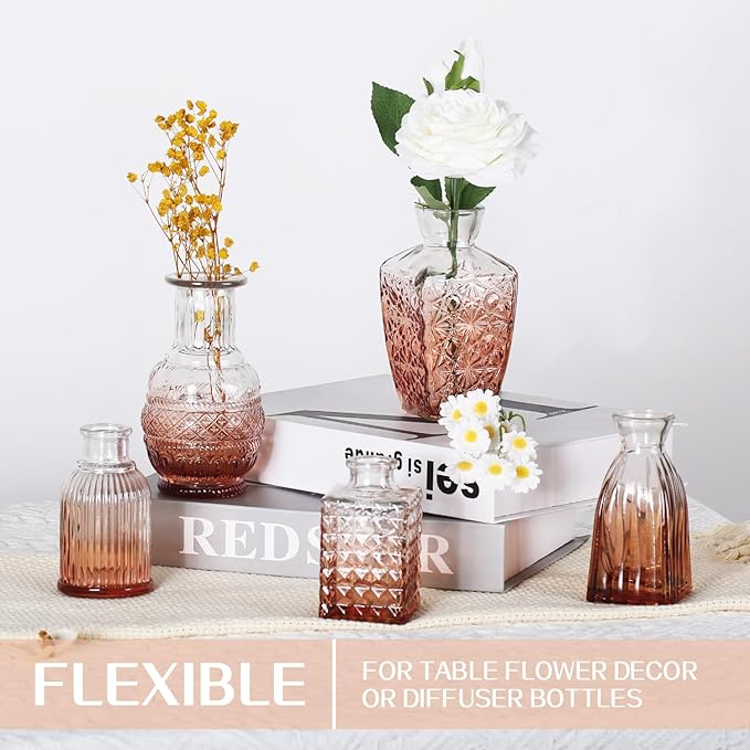 Mini Bud Vases Set of 12 As Wedding Centerpieces for Tables,Clear Bud Vases for Flowers,Small Flower Vases Suitable for Birthday Party,Anniversary,Wedding Reception,Baby Shower (Pink, 12PCS)