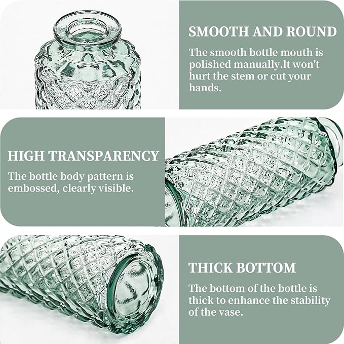 Mini Bud Vases As Wedding Centerpieces for Tables,Clear Bud Vases for Flowers,Small Flower Vases Suitable for Birthday Party,Anniversary,Wedding Reception,Baby Shower (Green, 24PCS)