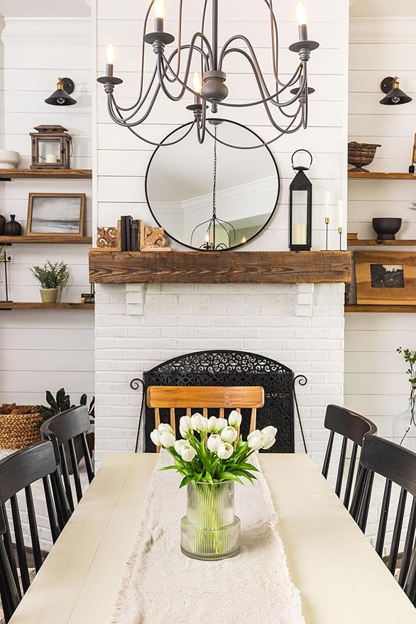 Tulip and Vase Ribbed Glass with 20 White Tulips Artificial Flowers Gift Set Fluted Clear Flower Short Vase and Fake Tulips Look Real Entryway Living Room Table Office Shelf Decor Faux High End Gift